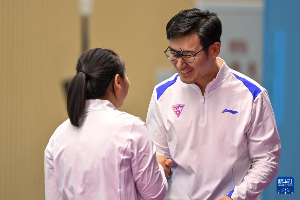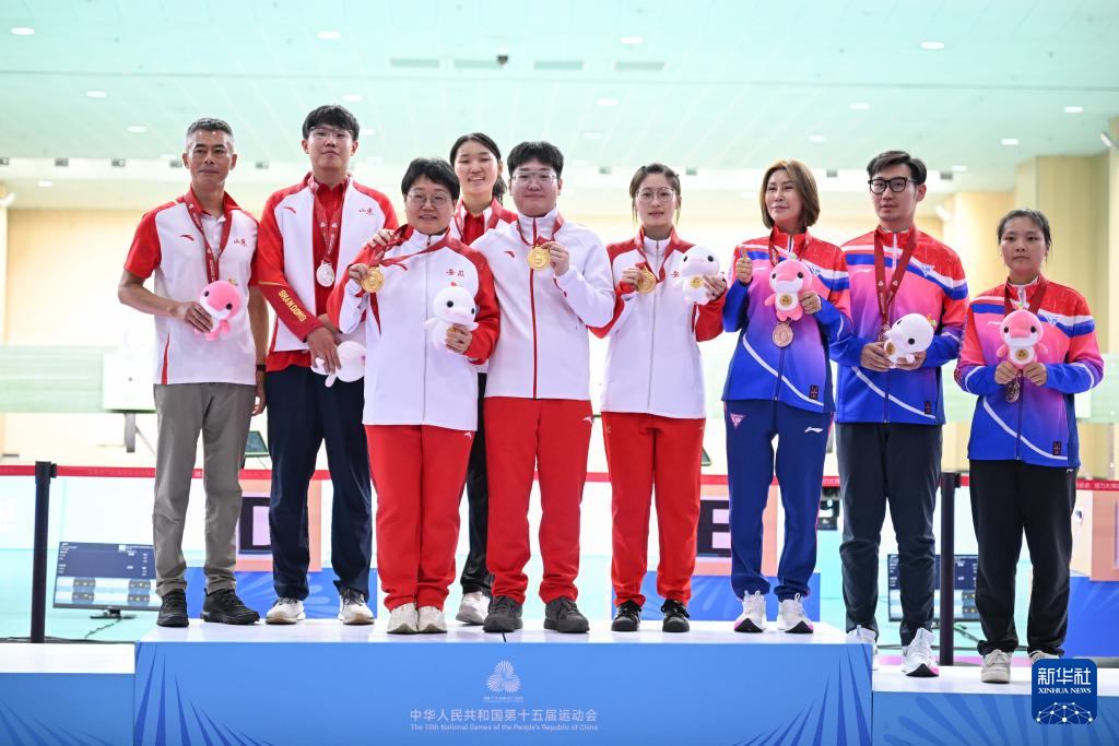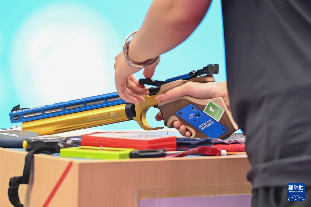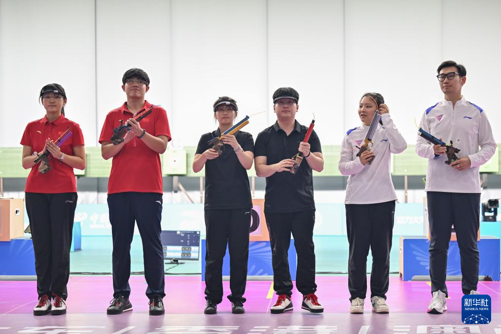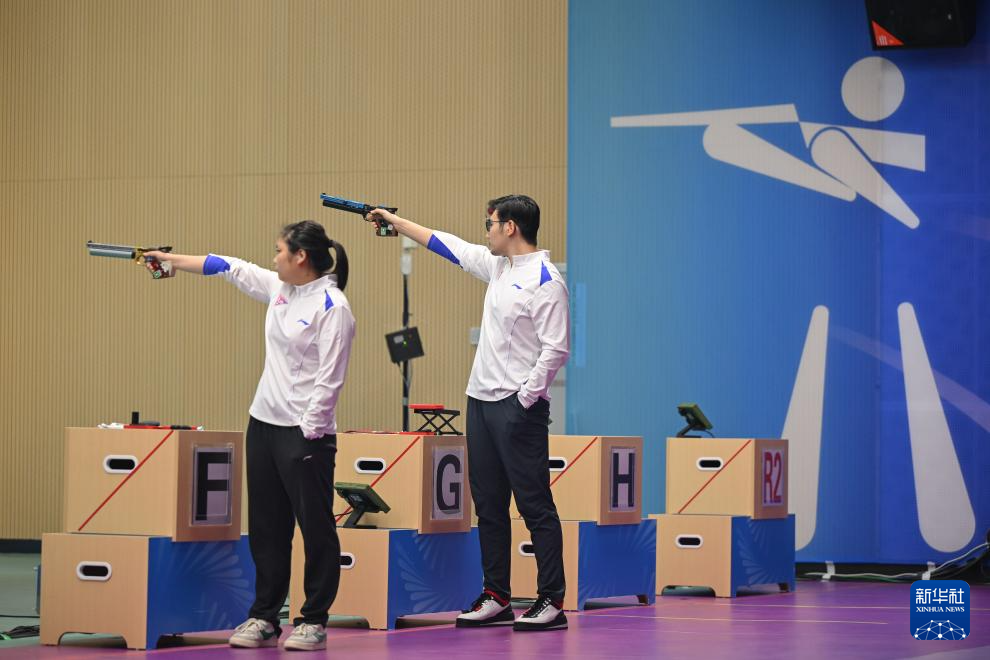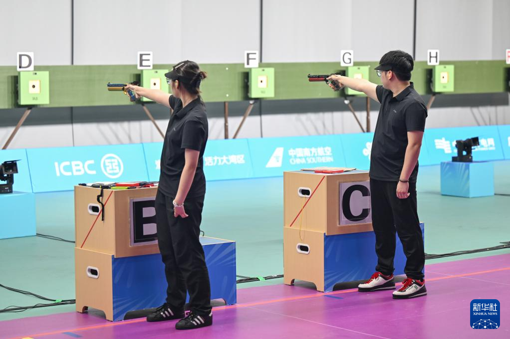 当日,第十五届全运会射击10米气手枪混合团体决赛在广州举行。