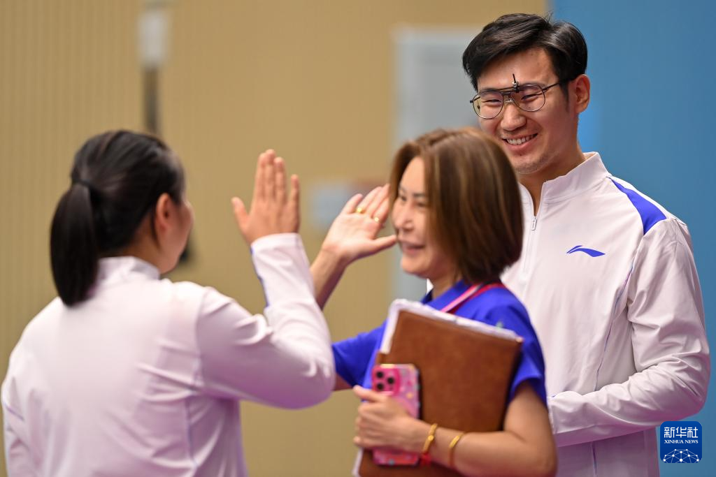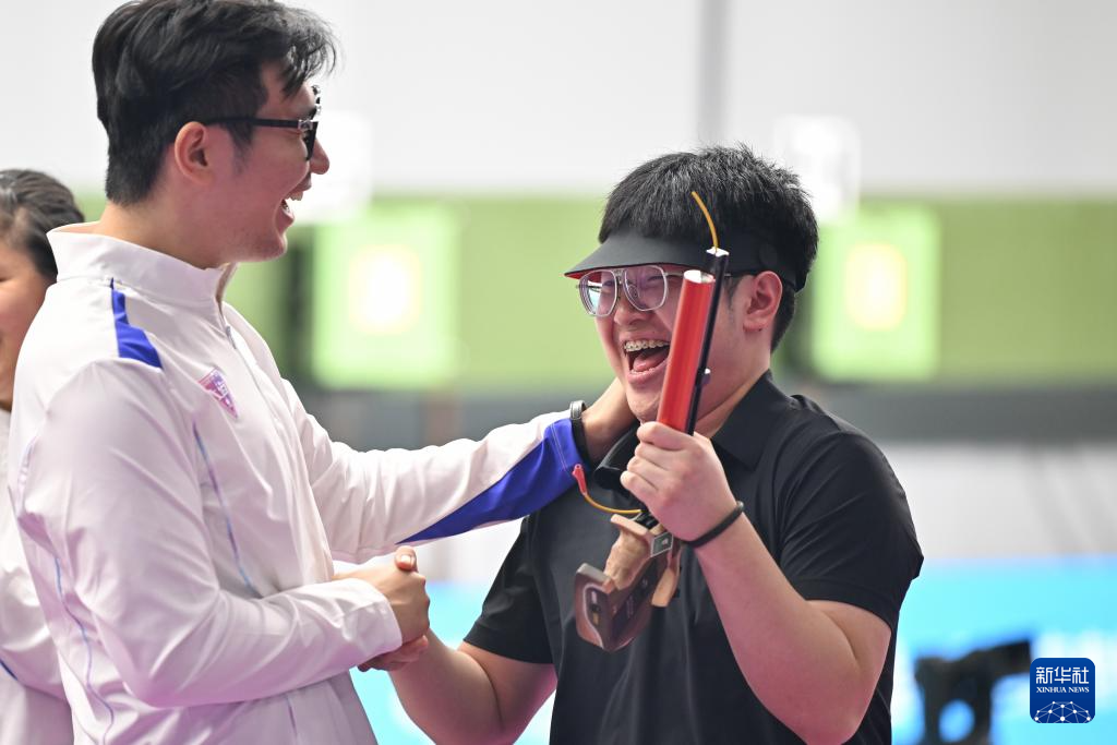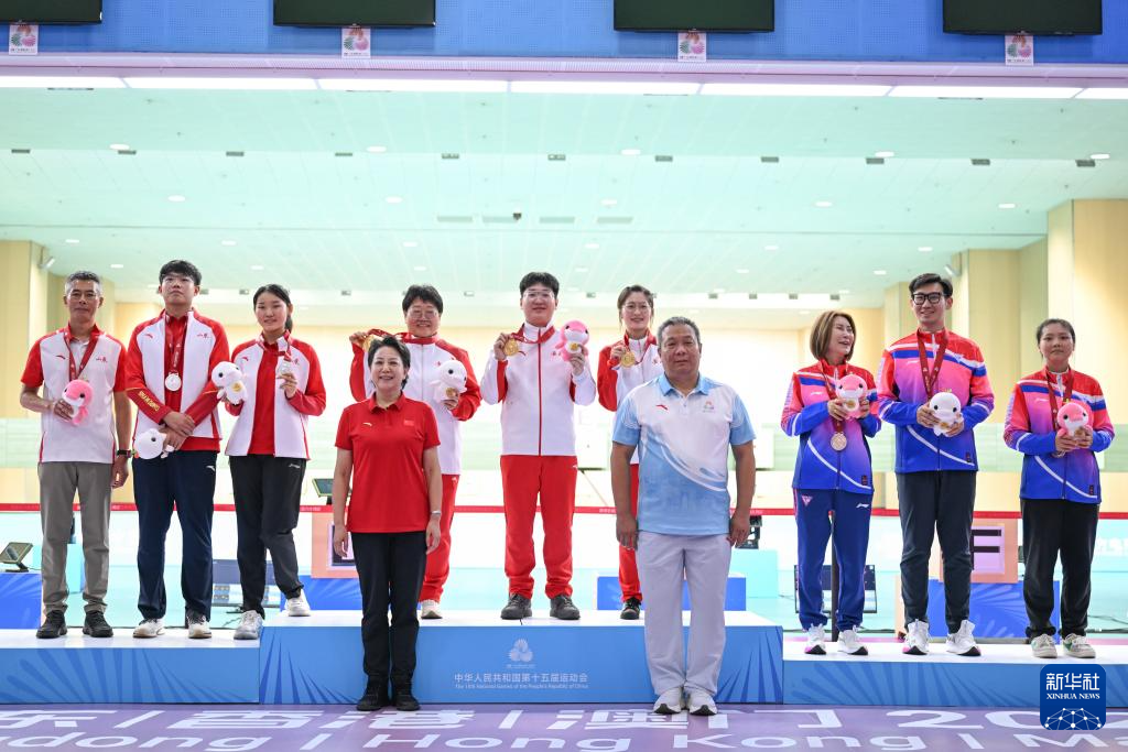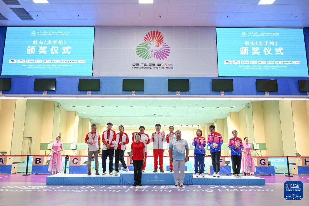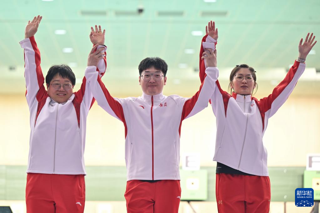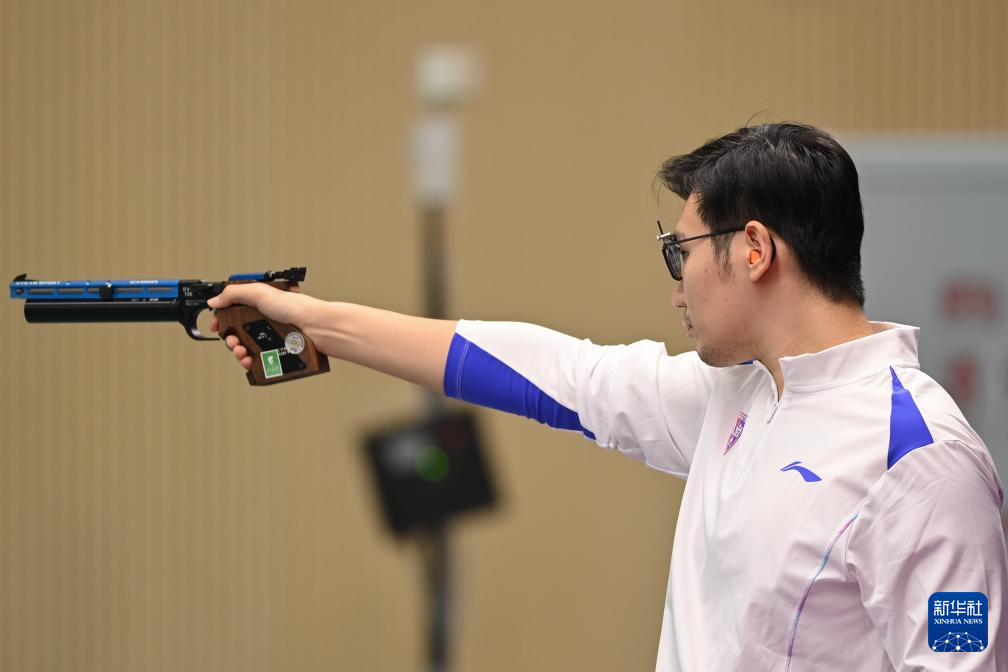 当日,第十五届全运会射击10米气手枪混合团体决赛在广州举行。