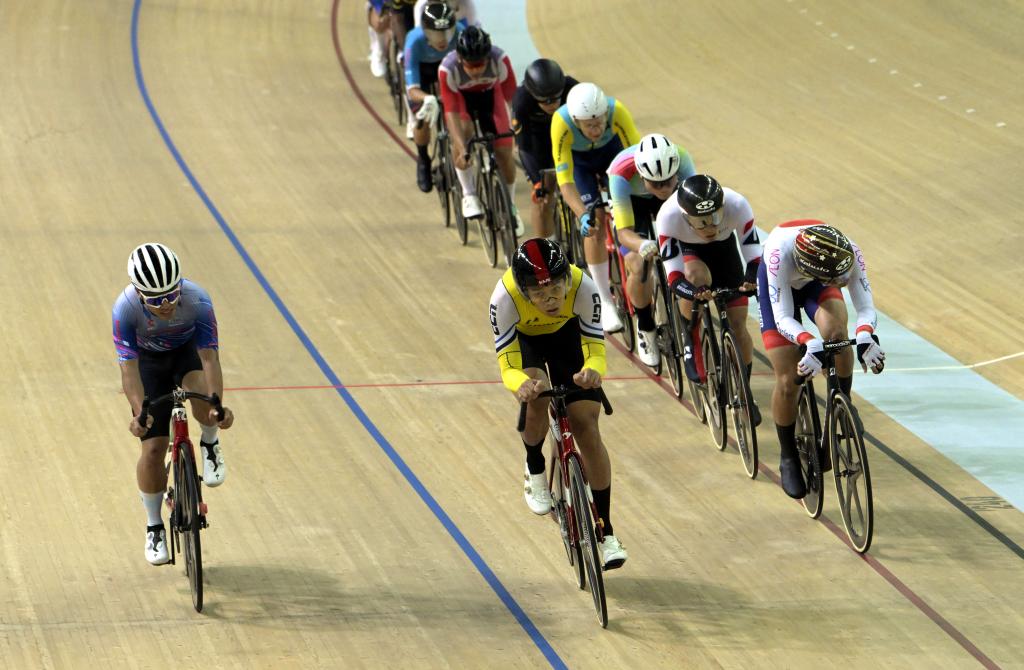 4月21日,2025香港国际场地杯暨第十五届全运会场地自行车测试赛在香港将军澳自行车馆举行。新华社发(卢炳辉摄)
