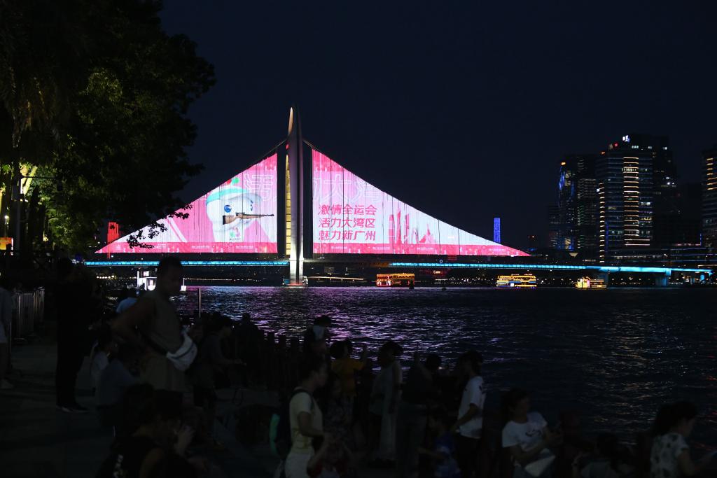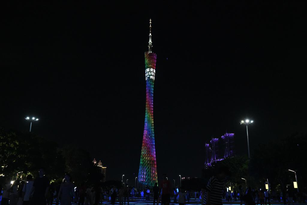 这是8月1日在广州拍摄的主题灯光秀。新华社发(许建梅 摄)
