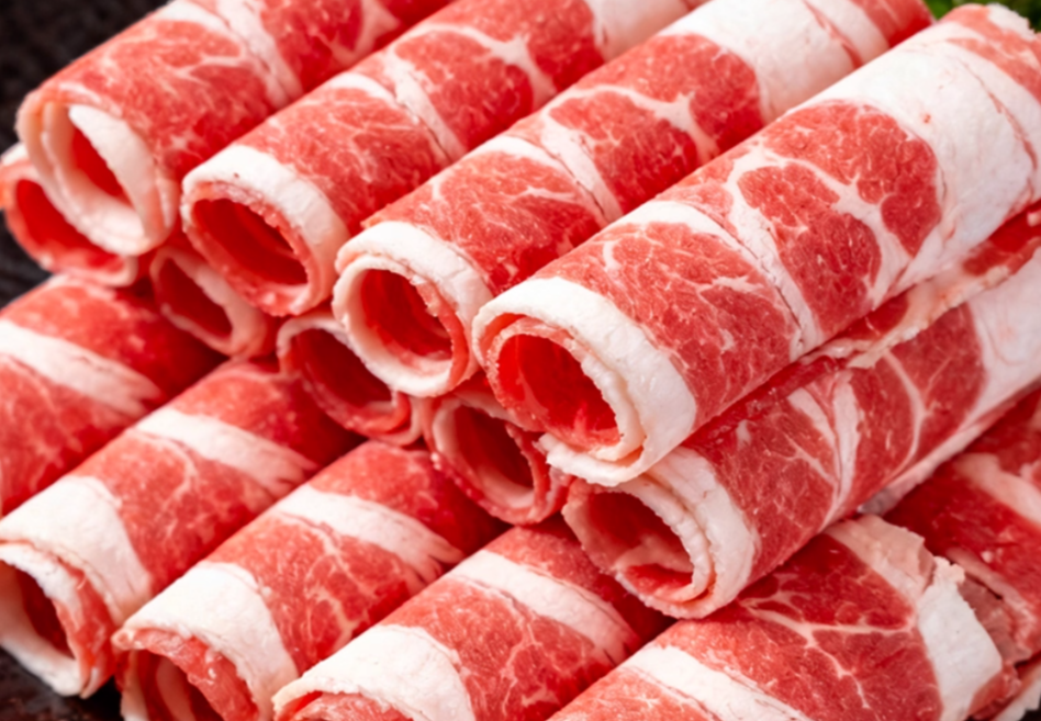 更关键的还有切片工艺。冻肉在-18℃的状态下被机器切成0.5-1毫米的薄片,这个厚度恰好让肌纤维被横向切断成了极短的片段。在《Meat Science》2018年的研究指出,肉的嫩度与肌纤维直径和长度密切相关——即越短越细的纤维,咀嚼时需要的剪切力就越小。所以,当我们把这样的肉卷放进沸腾的火锅里时,蛋白质迅速变性收缩,加上本来就被破坏的纤维结构,入口就仿佛“嫩如豆腐”的好咬口感了。