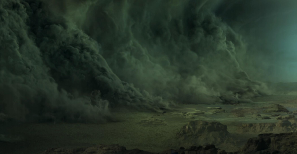为真实还原柴达木盆地的极端环境,剧组深入西北荒漠进行实景拍摄,直面沙暴、狼群与流沙的威胁。这种“沉浸式”创作不仅提升了视觉的真实感,更通过环境与人物的互动,构建了独特的荒漠美学。尤其是那几场气势磅礴的大型沙尘暴,飞沙走石间尽显大自然的狂野力量,令人震撼不已,深刻表现出了在极端自然条件下,勘探工作的无比艰苦。