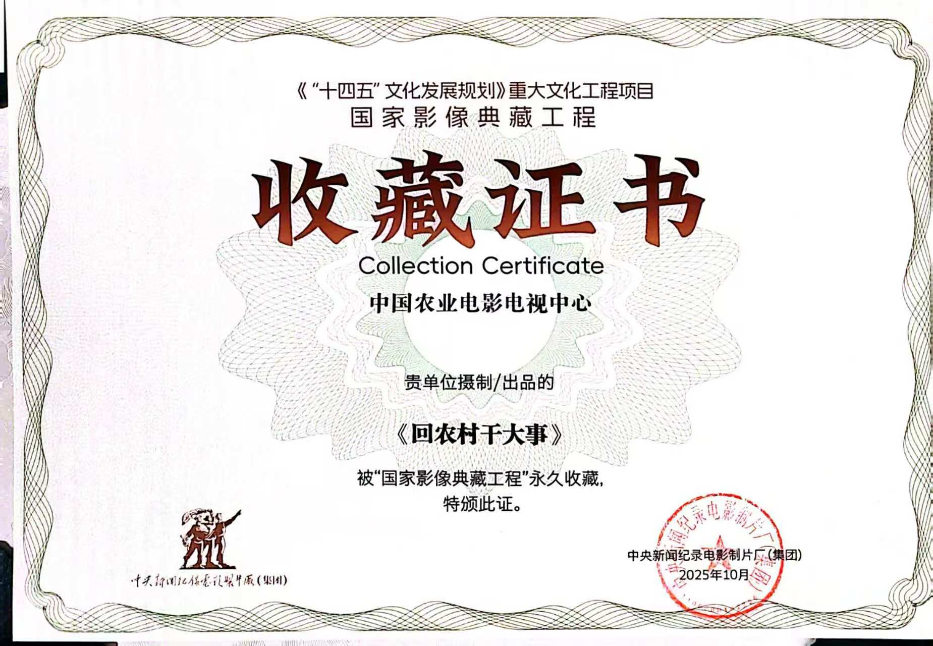 本届华语纪录电影大会由中央广播电视总台、中国文联指导,中央新影集团等联合主办,此次《回农村干大事》入选国家影像典藏工程永久收藏,既彰显了乡村题材作品的创作活力,也印证了纪实影像在记录时代进程中的重要价值。