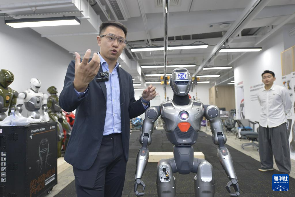 10月29日,在广东深圳,众擎机器人科技联合创始人姚淇元介绍机器人“小众”。新华社记者 刘力航 摄
