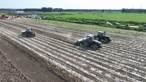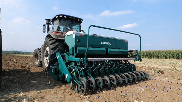 在耕种播种环节,雷沃智能拖拉机分别搭载液压翻转犁,以及适用于京津冀区域的机械式、气吸式、电驱式免耕播种机及复式条播机出场,进行玉米、小麦等作物高产模式作业演示。