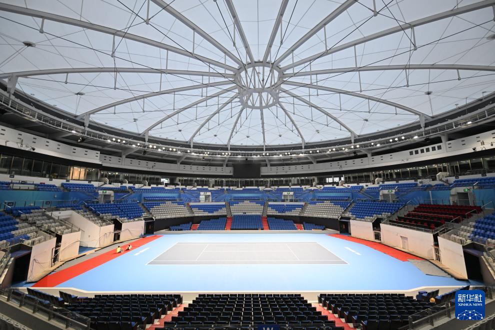 广东珠海横琴国际网球中心内景(10月18日摄)。全运会网球比赛在这里举行。