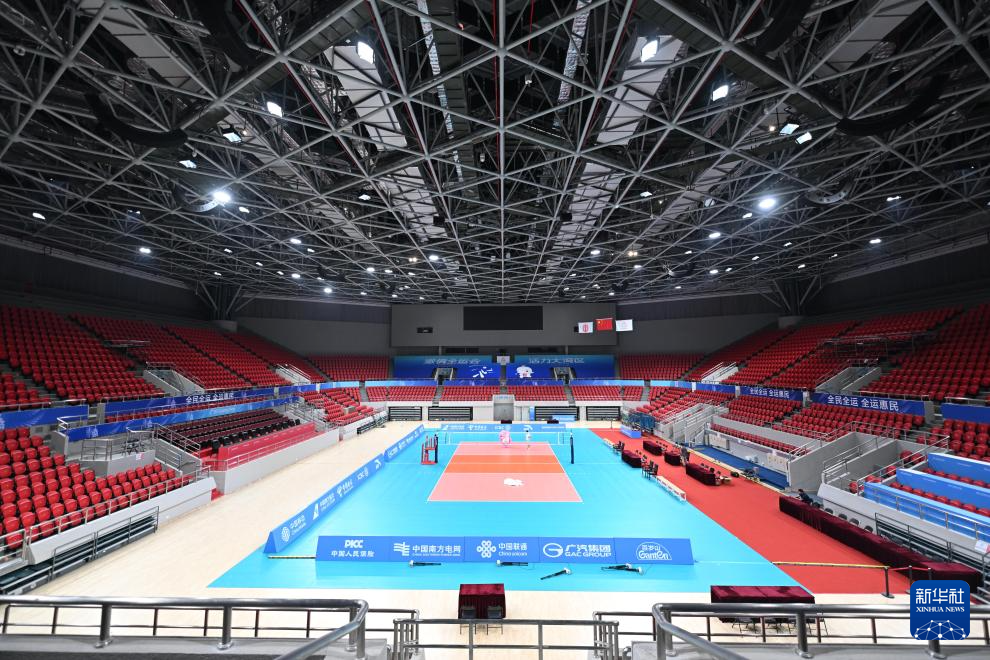广州天河体育中心体育馆(10月18日摄)。全运会排球男子18岁以下组比赛在这里举行。