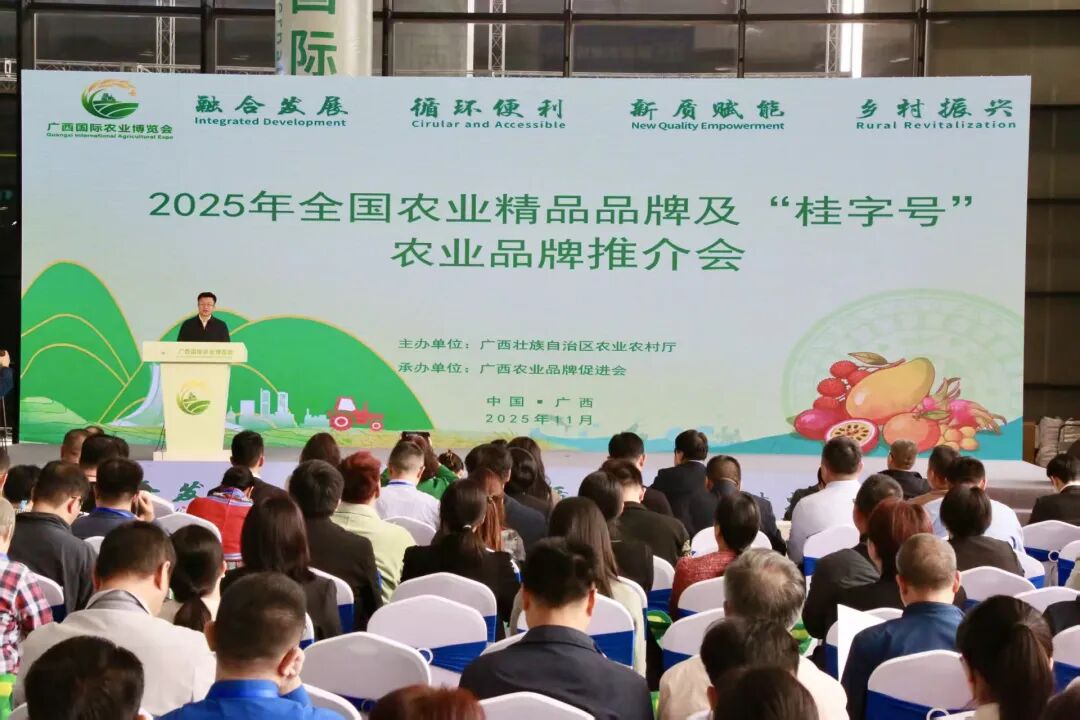 在2025年广西国际农业博览会期间,由广西壮族自治区农业农村厅主办的全国农业精品品牌及“桂字号”农业品牌推介会于11月6日上午在南宁国际会展中心举行。