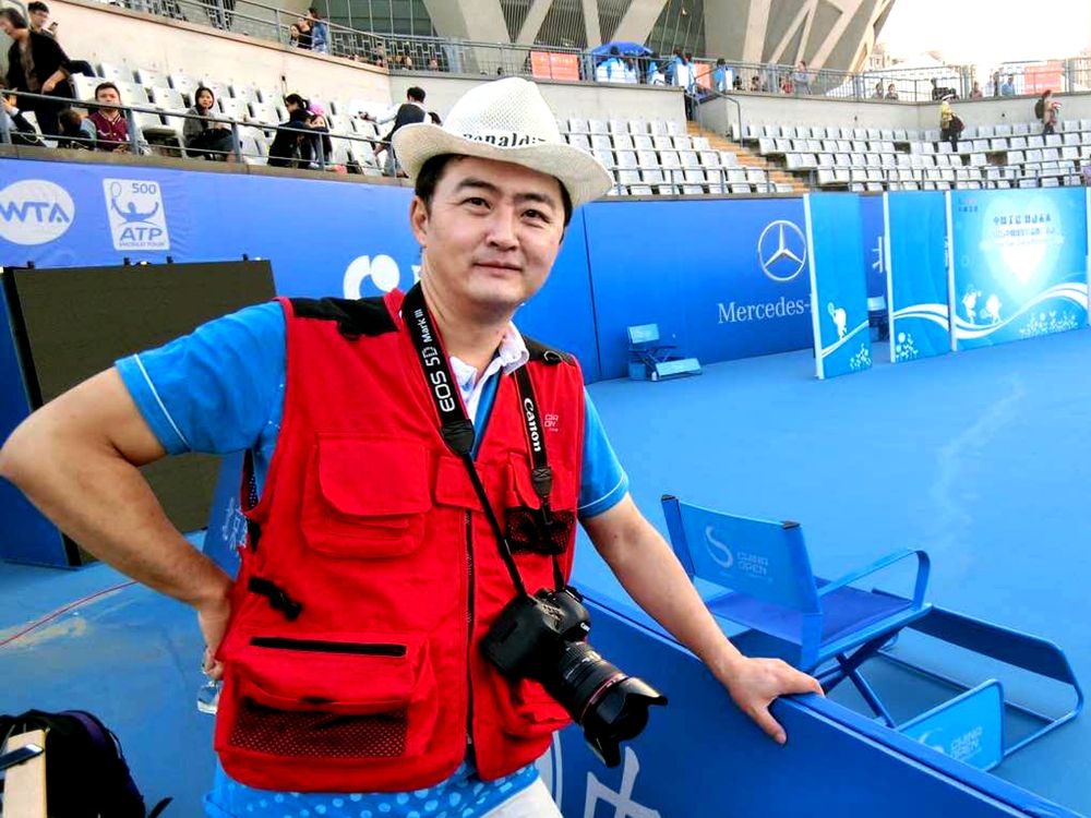 2015年10月,新华社记者潘旭在中国网球公开赛决赛现场留影。