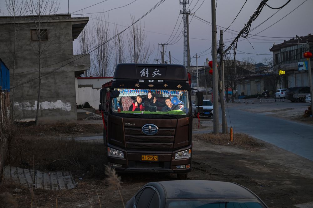 2025年1月20日,孔令建夫妇回到村里,夫妇俩和小女儿在货车驾驶室里合影。2018年记者曾经跟拍体验过货车司机孔令建从浙江杭州往返湖北麻城跑车的一路艰辛。七年过去了,孔令建的大女儿已结婚,儿子参军当兵,小女儿考上了大学,一家人和和美美,各自忙碌,踏实生活。2025年新春来临之际,记者历时十天,再次跟车记录下孔令建夫妇过年前的跑车生活和回家过年团圆的故事。新华社记者 陈晔华 摄