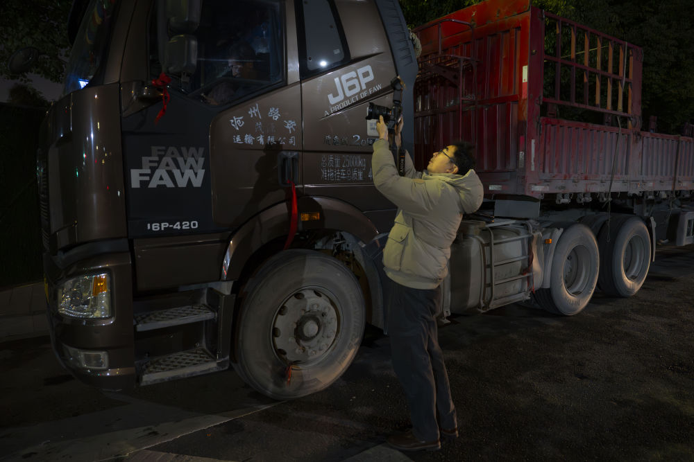2025年1月12日,陈晔华在杭州采访大货车司机孔令建。新华社记者 才扬 摄