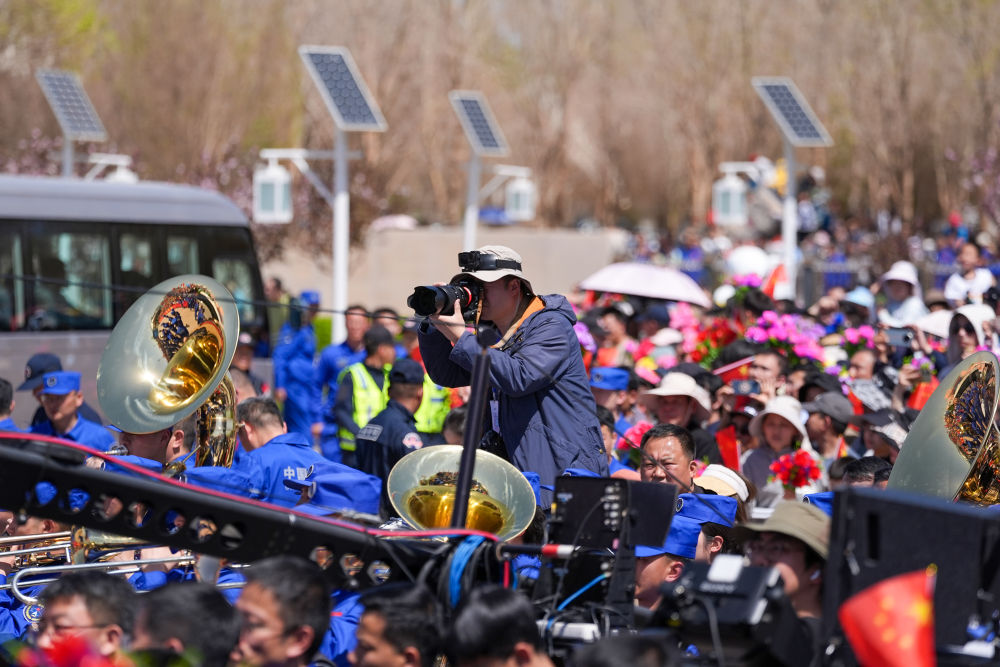 2025年4月24日,新华社记者李鑫在神舟二十号载人飞行任务航天员乘组出征仪式上拍摄。新华社记者 连振 摄