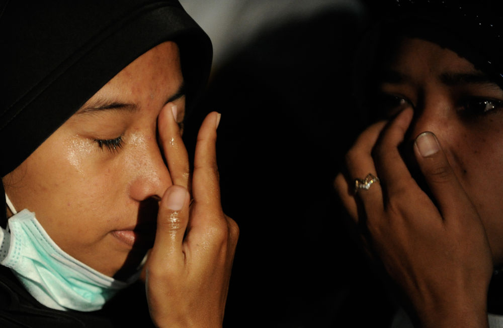 2010年11月7日,两名女孩在印尼斯莱曼一处公墓举行的葬礼上哭泣。新华社记者 金良快 摄