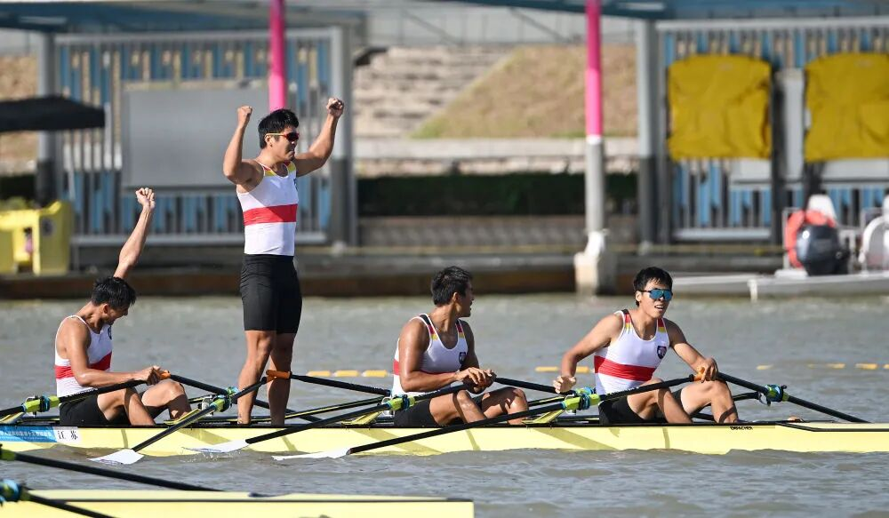 ·江苏队在第十五届全国运动会男子四人双桨决赛中夺得冠军,这是十五运会开幕式后产生的首枚金牌。