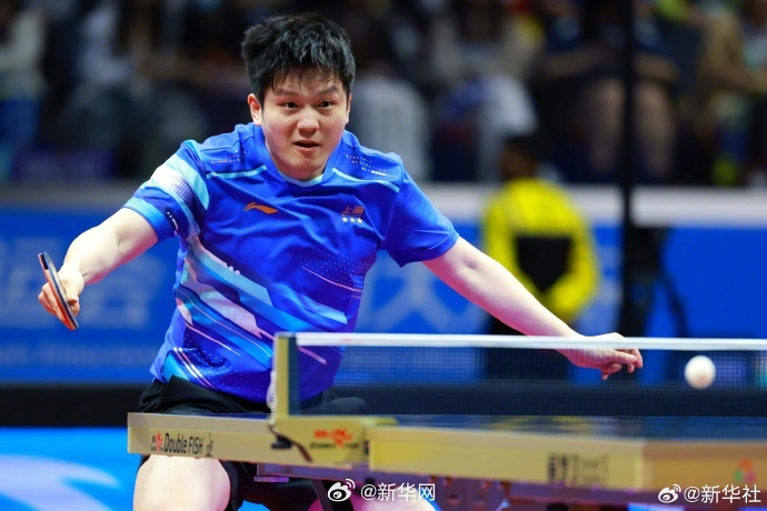 11月10日,第十五届全国运动会乒乓球项目在澳门银河综艺馆展开男单1/16决赛的争夺,河北队的孙颖莎战胜天津队的刘炜珊,晋级女单16强。上海队的樊振东战胜河北队的周雨,晋级男单16强。
