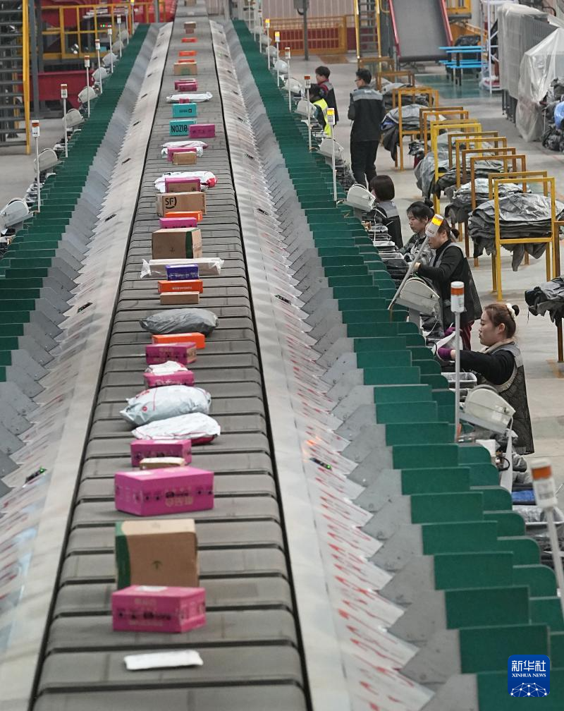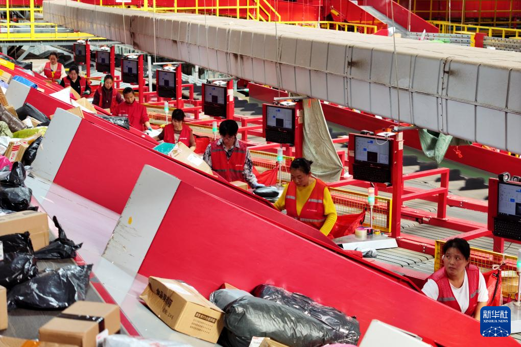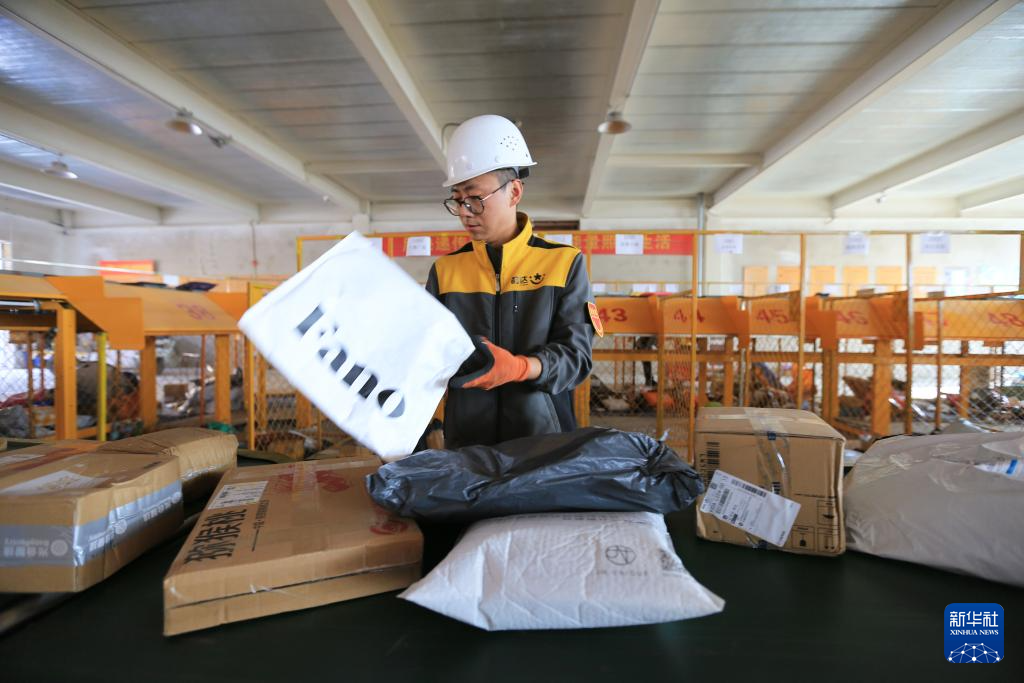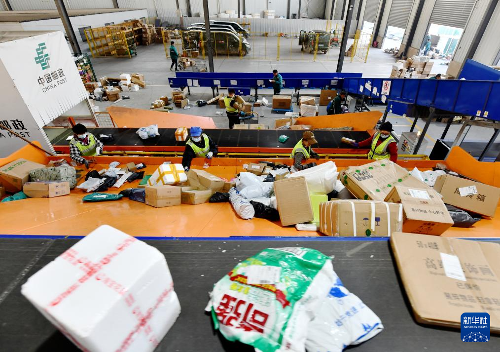 11月11日,工作人员在中国邮政集团有限公司河北省石家庄市栾城区分公司分拣快递。