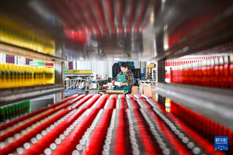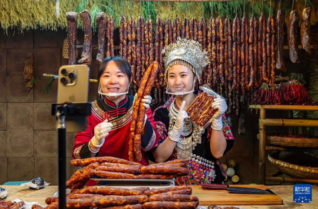 11月11日,工作人员在贵州省安顺市天赐贵宝金刺梨生态产业园通过直播带货方式销售金刺梨汁。