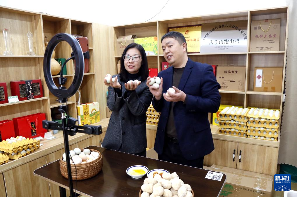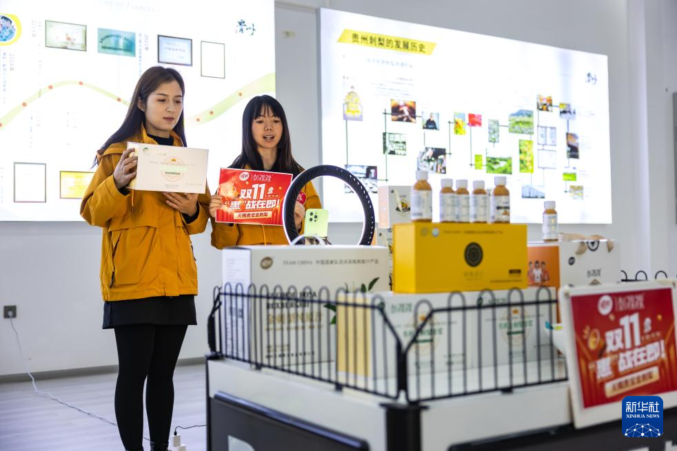 11月11日,工作人员在贵州省黔西市电子商务服务中心电商平台直播销售农特产品。