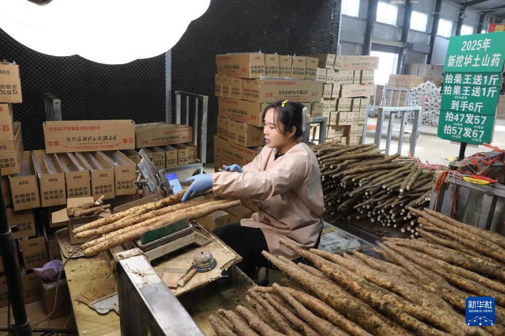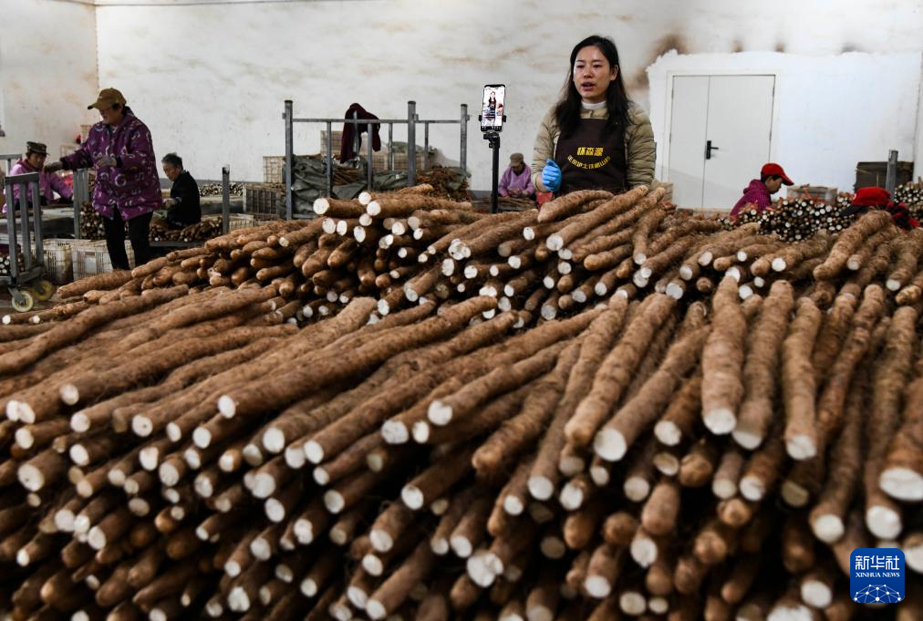 11月11日,在河南省焦作市温县铁棍山药产业园区,一商户通过网络直播销售铁棍山药。