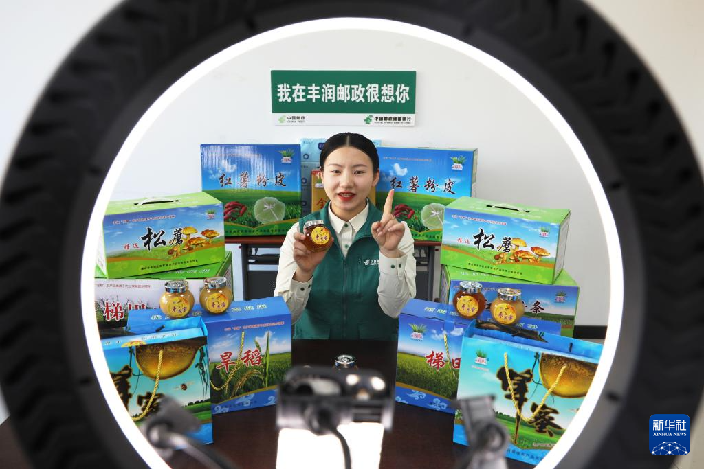 11月11日,在中国邮政集团有限公司河北省唐山市丰润区分公司,主播在网络平台上推广当地农特产品。