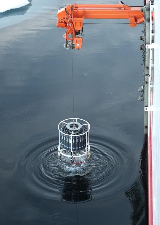 CTD(温盐深剖面仪)采水,是北冰洋水体环境调查的主要手段。8月2日“雪龙2”号上进行的CTD采水作业,让参加过多次北极科考的自然资源部第二海洋研究所副研究员郝锵等队员精神为之一振。