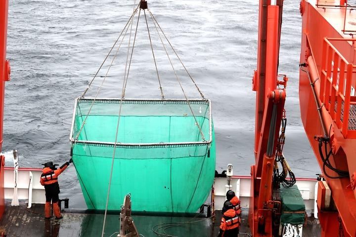 2025年8月15日,科考队员在“雪龙2”号艉甲板进行中层生物拖网作业。 对于鱼类受气候变化影响,许庆昌认为,北冰洋为亚欧大陆和北美大陆所环绕,蕴藏着丰富的渔业资源,比如巴伦支海鳕鱼、毛鳞鱼和鲱鱼等。气候变化导致北冰洋海冰消融的时空范围逐步扩大,公海海域正逐步变为季节性冰封水域,大片开阔水域逐步成为适航和潜在适渔水域,北极渔业发展正在出现一系列新的变化。