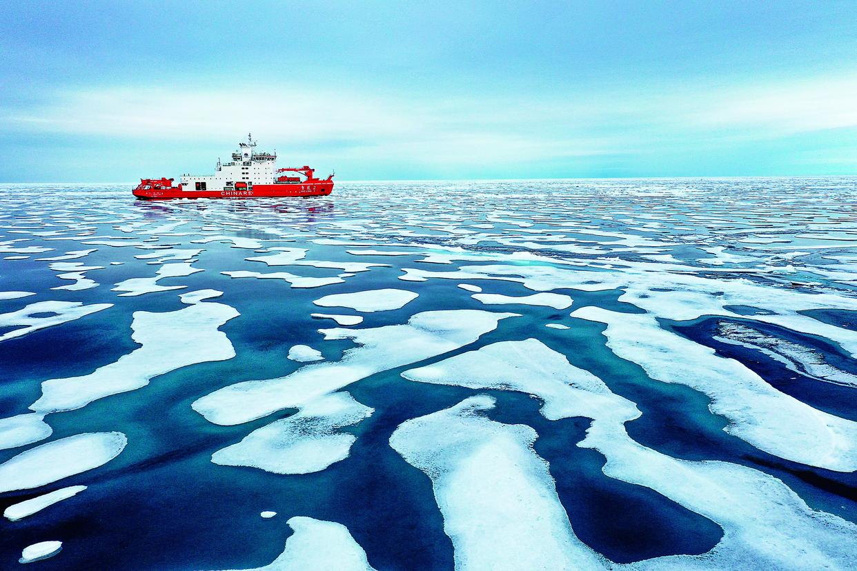 2025年8月3日,“雪龙2”号航行在北冰洋上。气候变暖,北极海冰加快消融。 当北冰洋的海冰覆盖范围不到100万平方公里时,科学界称之为北极的“无冰时代”。监测数据显示,随着气候变暖,海冰变少、变薄,北冰洋的夏季正从少冰时代走向无冰时代。联合国政府间气候变化专门委员会的一份评估报告认为,北冰洋预计最早将在本世纪中叶前后出现夏季无冰。一些学术研究机构则预测,夏季无冰的年代或将更早出现。