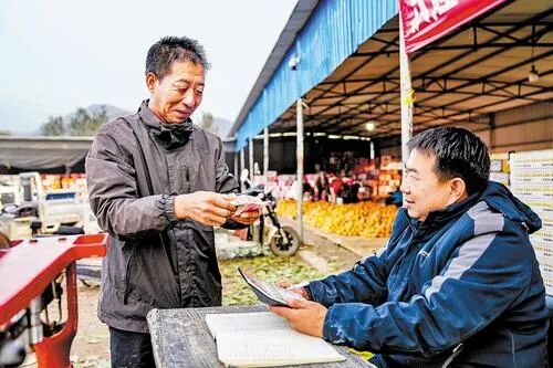 10月27日,保定沃隆农业发展有限公司收购点,工作人员对柿子逐一称重。