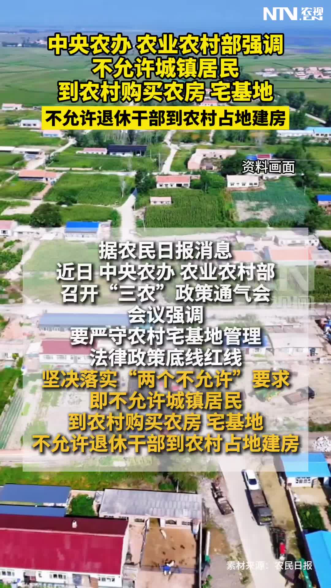 中央农办、农业农村部强调,不允许城镇居民到农村购买…