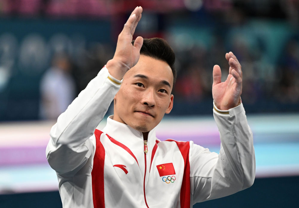 2024年7月31日,肖若腾在巴黎奥运会体操男子个人全能决赛后。新华社记者 程敏 摄