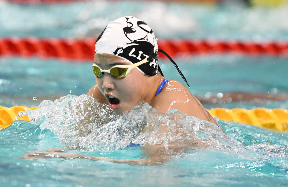 ↑2024年9月28日,于子迪在全国游泳锦标赛(25米)女子400米个人混合泳决赛中。