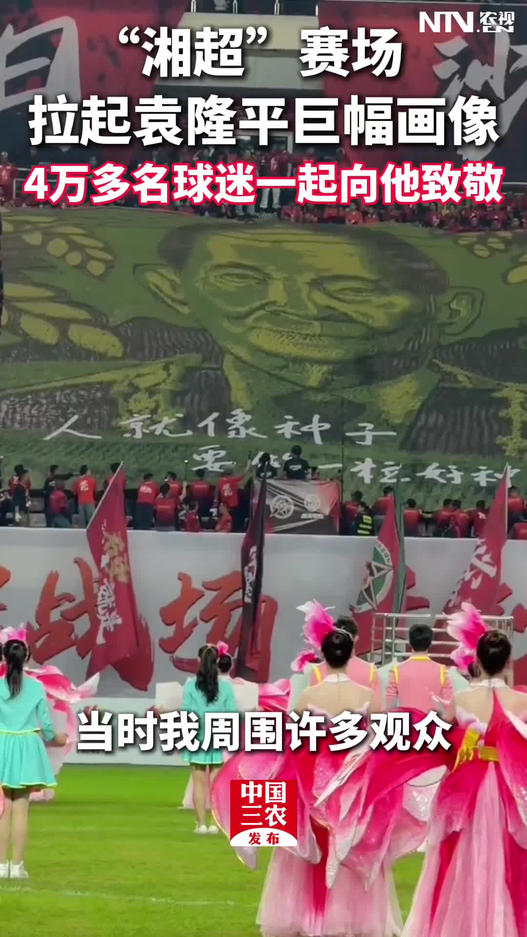 “湘超”赛场拉起袁隆平巨幅画像 4万多名球迷一起向…