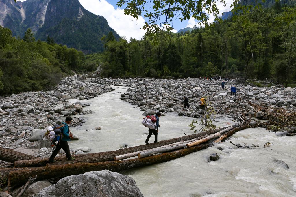 2015年8月4日,搜寻队在前往若果冰川的路上。 新华社发(张瑾 摄)