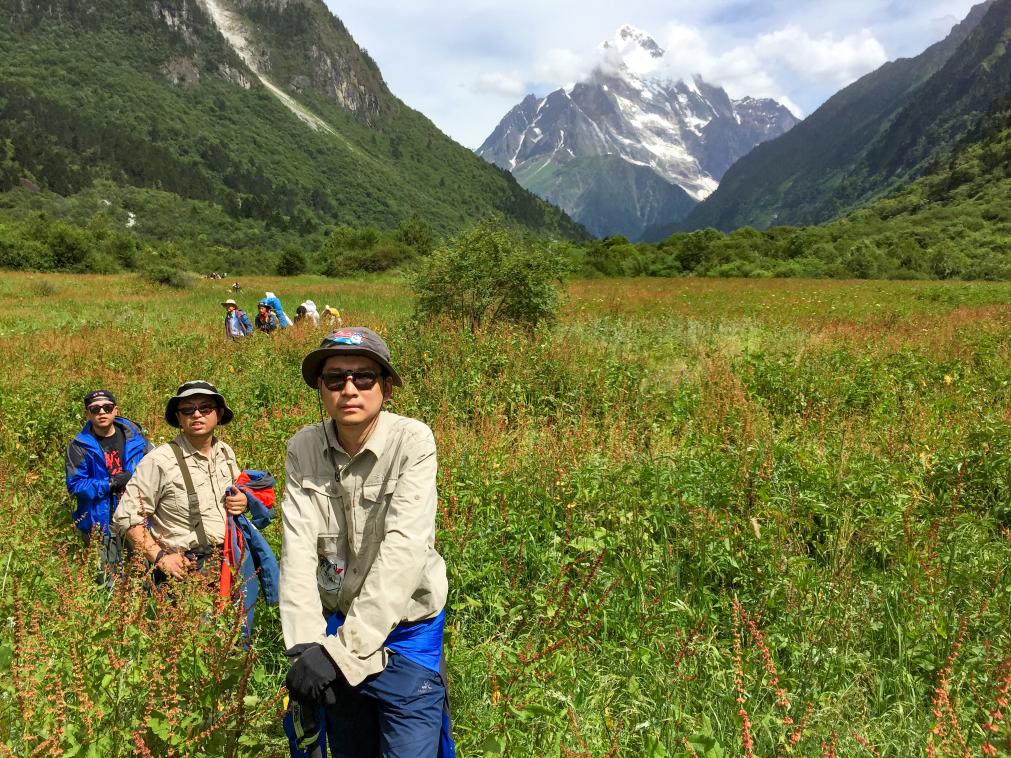2015年8月1日,搜寻队成员胡志洋(前)等在前往若果冰川的路上。