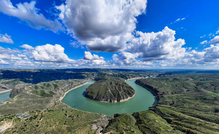 这是2024年8月12日拍摄的位于内蒙古自治区和山西省交界处的黄河老牛湾风光。新华社记者 连振 摄