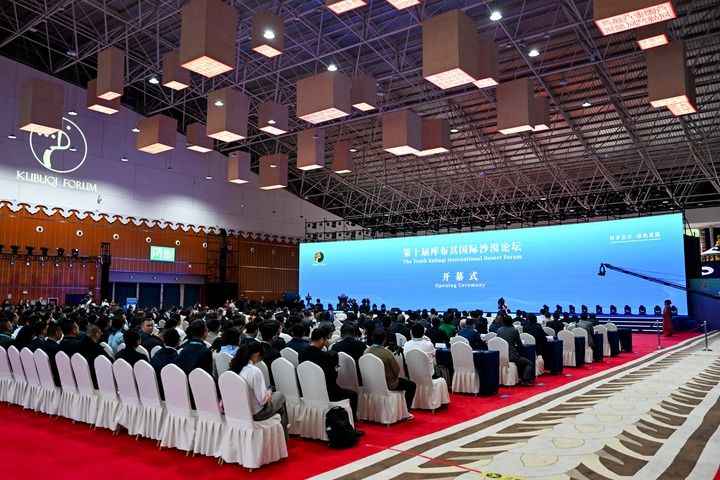 这是2025年9月16日拍摄的第十届库布其国际沙漠论坛开幕式现场。新华社记者 李志鹏 摄