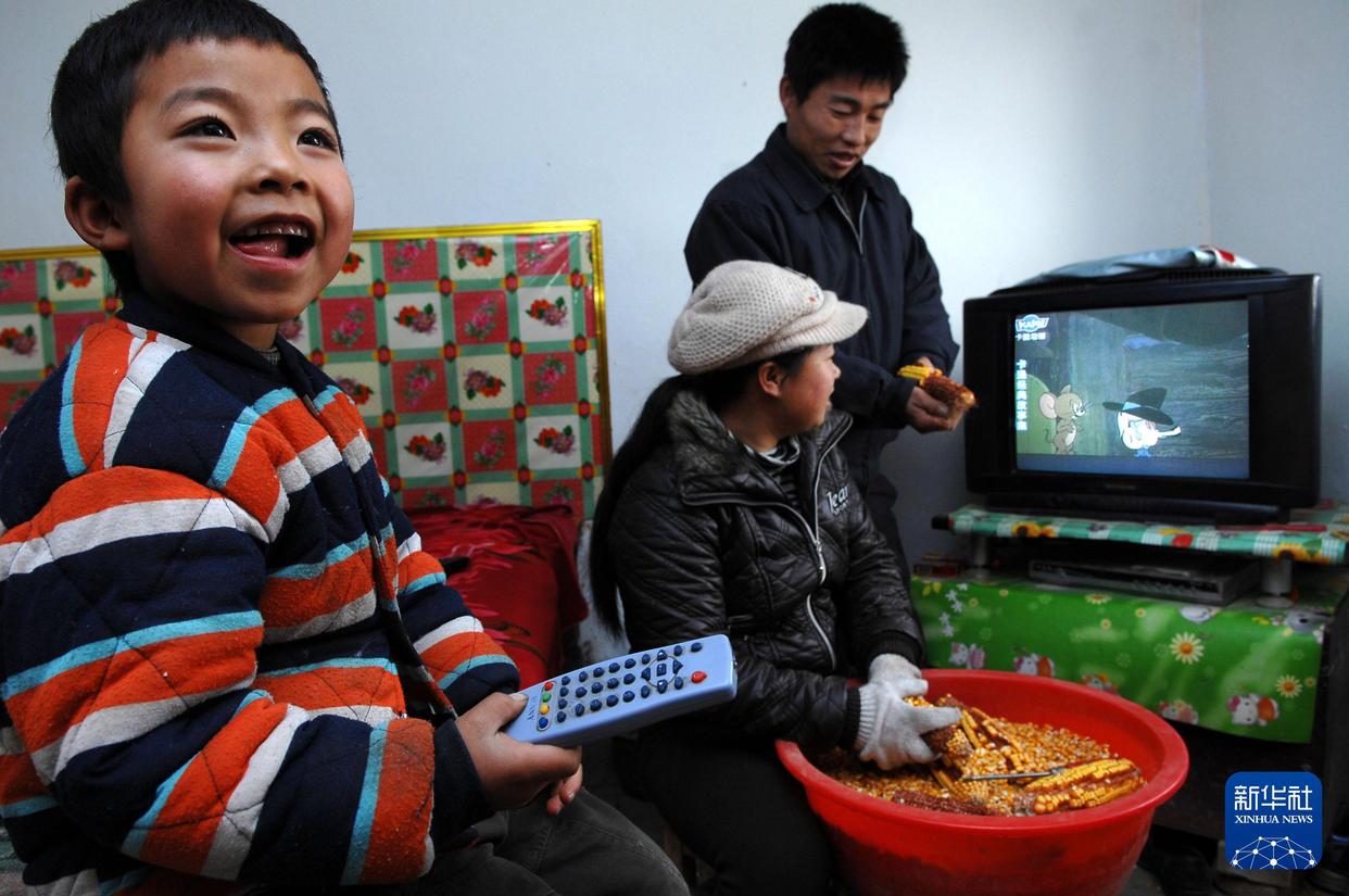 2007年12月27日,宁夏海原县的赵鹏宇(左一)在家里收看电视节目。新华社记者 李紫恒 摄