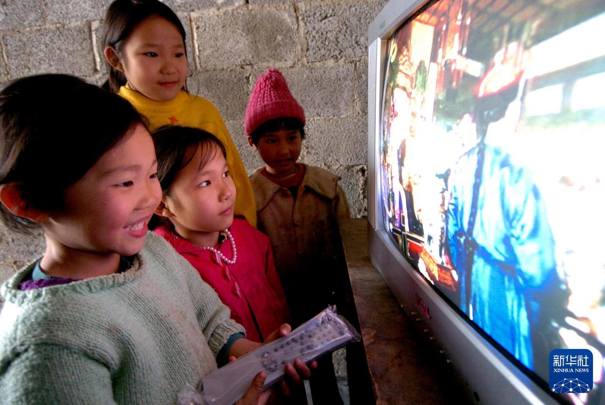 2006年1月28日,广西都安瑶族自治县的几名小朋友在看电视。新华社记者 刘广铭 摄