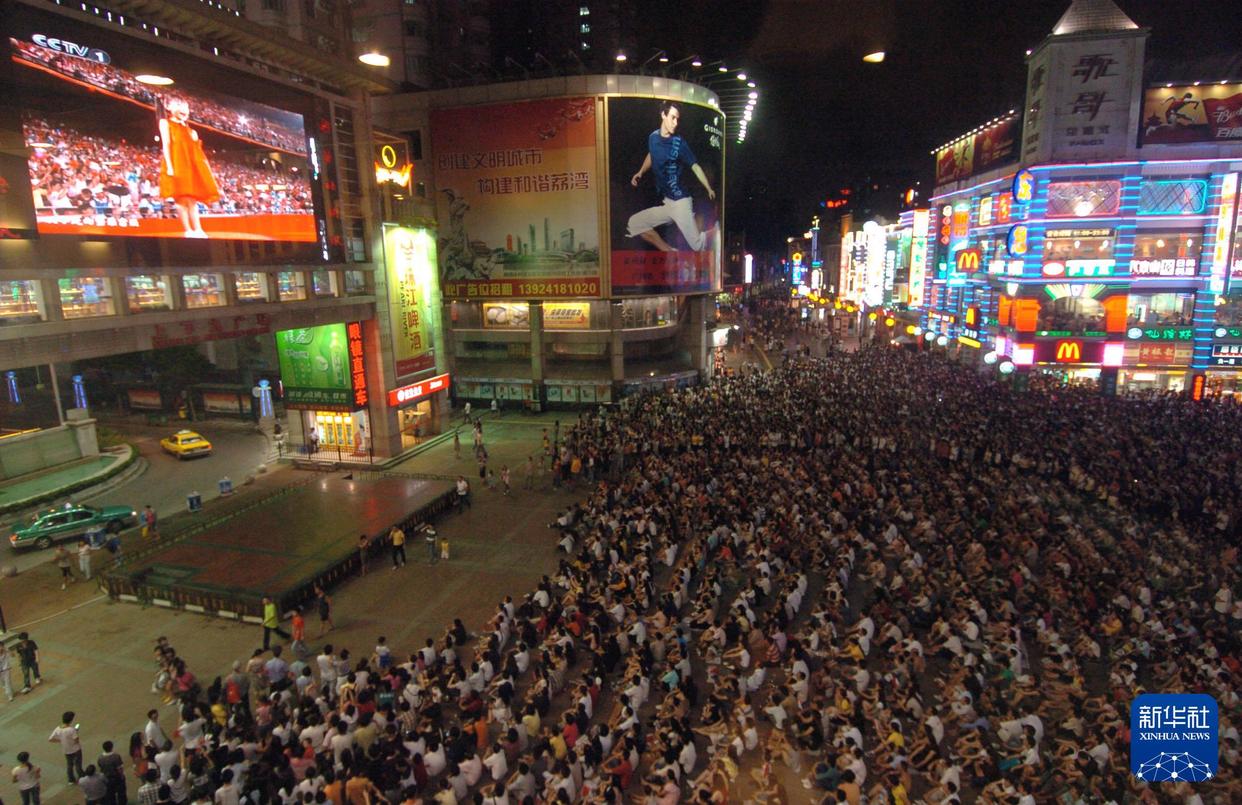 2008年8月8日晚,成千上万的广州市民聚集在广州市荔湾广场观看北京奥运会开幕式。新华社记者 卢汉欣 摄