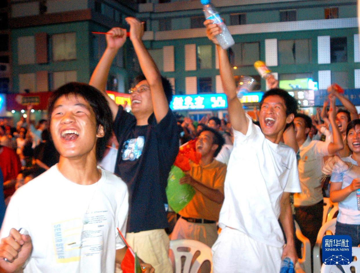 2004年8月3日晚,苏州石路步行街举办“足球互动之夜”活动,亚洲杯半决赛中国与伊朗之战牵动了众多市民的心。新华社发(王建中 摄)