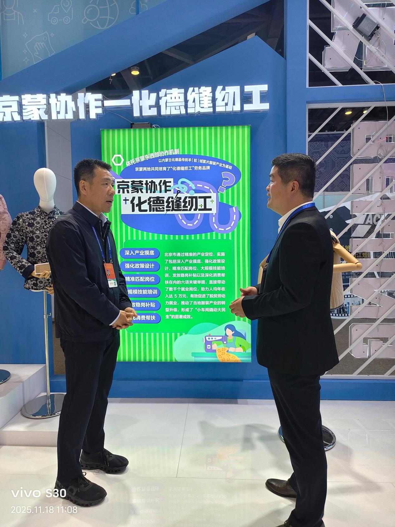 11月18日至19日,“化德缝纫工”劳务品牌作为京蒙协作的突出成果亮相第三届全国劳务协作暨劳务品牌发展大会,该品牌是2025年北京市报送的5个劳务品牌之一,这是北京市首次报送市外品牌参与国家级评选,也是内蒙古首个获此殊荣的劳务品牌,为京蒙协作增添了亮丽一笔。展会现场,来自化德县的精美羊绒、驼绒服饰整齐陈列,从保暖工服到时尚单品,各式展品背后,是一个劳务品牌带动一方产业、惠及万千家庭的生动实践。这个由东城区与化德县携手培育的品牌,以其创新的协作模式、扎实的技能支撑和显著的民生成效,赢得了与会各方的广泛关注与高度认可。