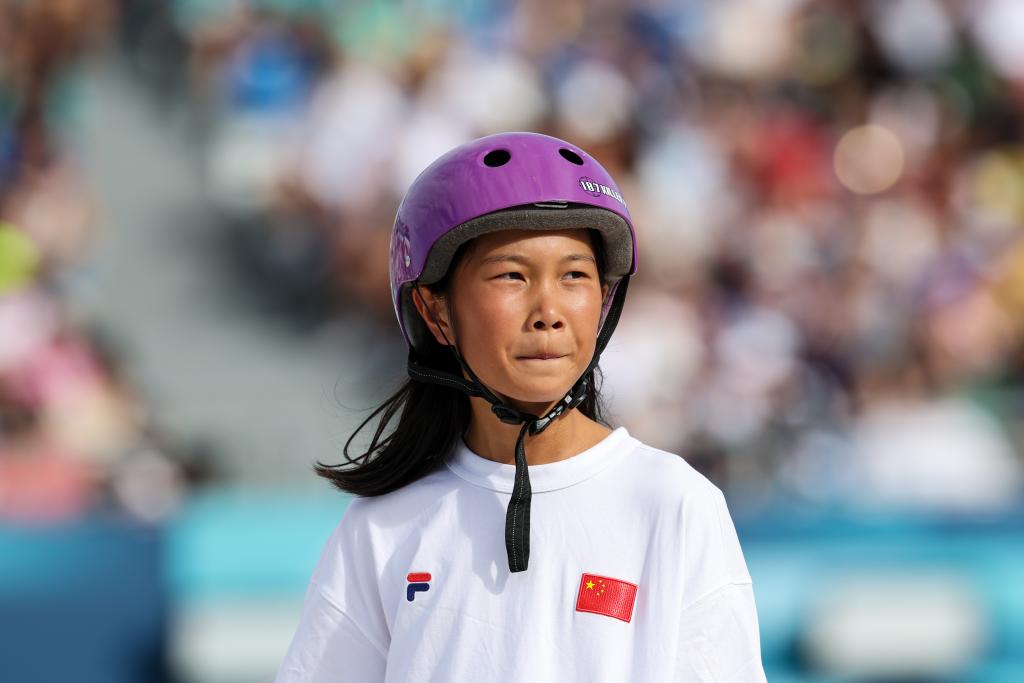 2024年7月28日,中国选手崔宸曦在巴黎奥运会滑板女子街式决赛中。新华社记者朱峥摄