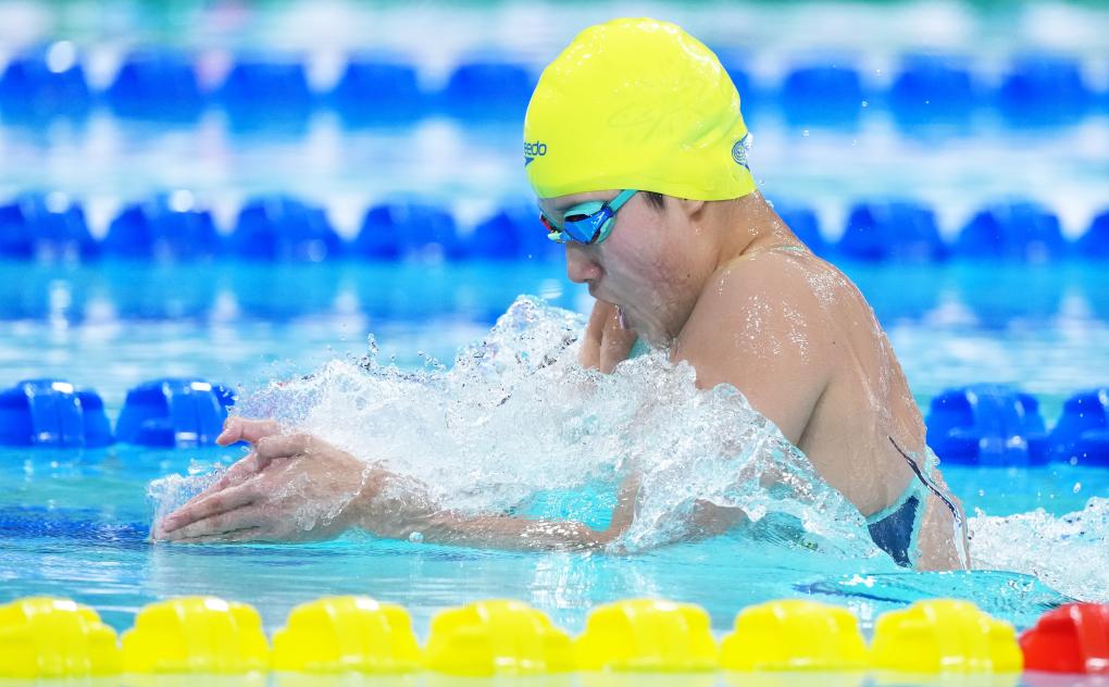 11月15日,江苏队选手吕沁遥获得女子200米蛙泳冠军。新华社记者杜宇摄