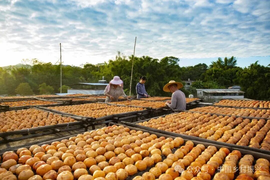 在广东省梅州市平远县石正镇中东村,村民正趁晴好天气晒制柿饼。平远县供销总公司通过合作社与农户签订收购合约,使石正柿花成为当地农民增收致富的特色产业。冯锡权摄(影像中国)