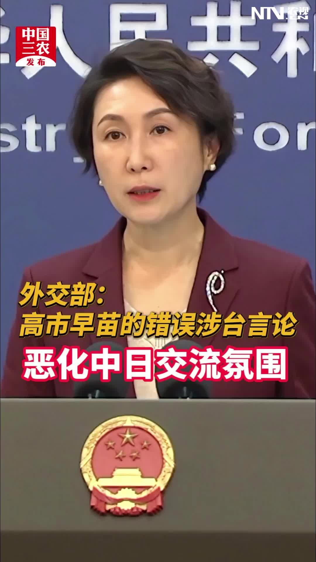 外交部:高市早苗的错误涉台言论恶化中日交流氛围