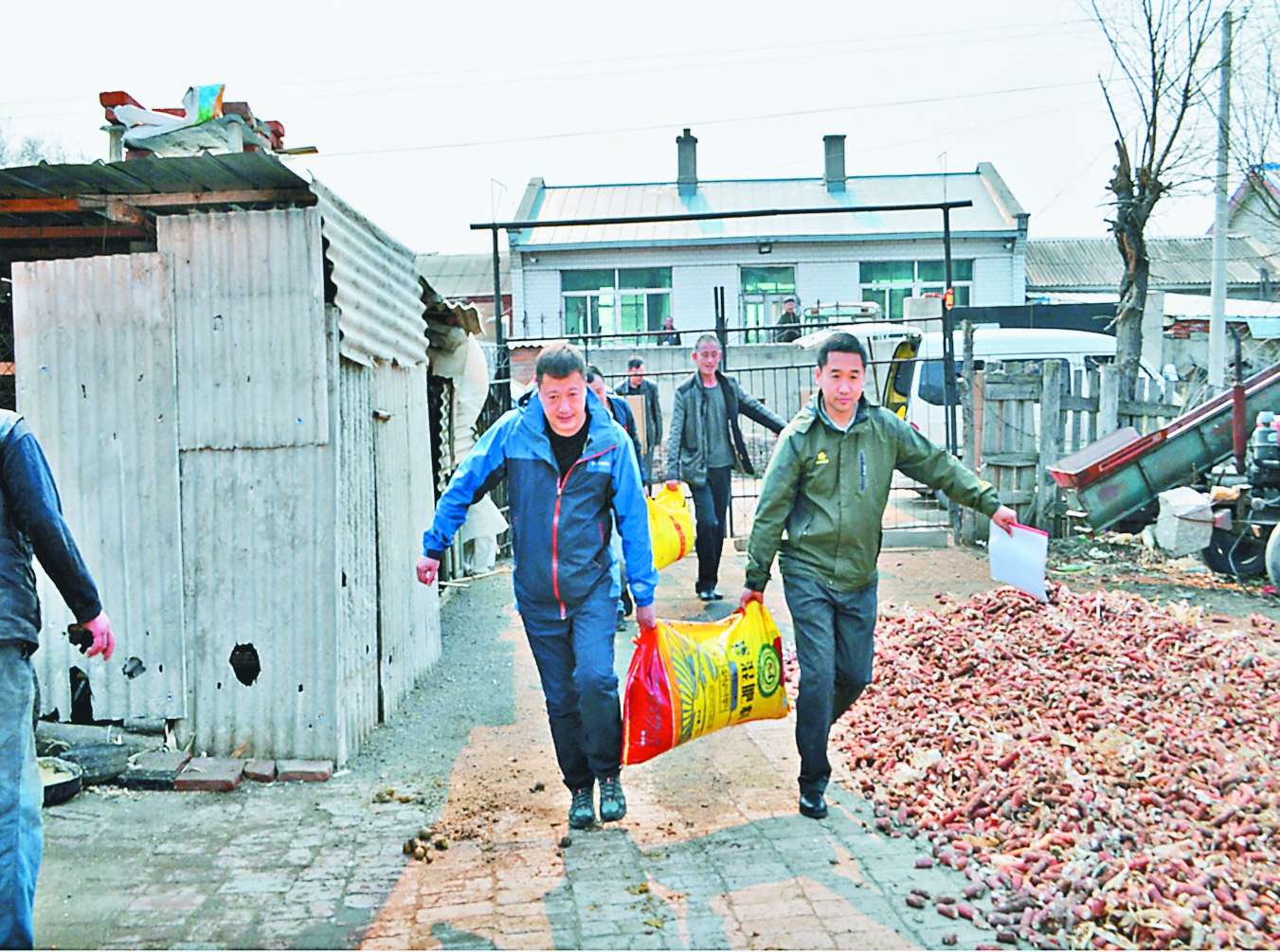 图为今年春耕期间,爱心企业为阿城区贫困农民送去春耕物资。