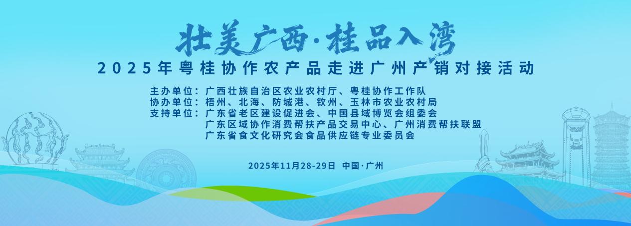 11月28日下午,由广西壮族自治区农业农村厅和粤桂协作工作队主办,梧州、北海、防城港、钦州、玉林市农业农村局协办的 “壮美广西・桂品入湾”2025粤桂协作农产品走进广州产销对接活动,在广东区域协作消费帮扶产品交易中心成功举办。活动以“推动广西特色农产品融入粤港澳大湾区市场,助力乡村振兴与农民增收”为核心目标,通过产销对接、现场展销、文艺展演等多元形式,搭建起广西与大湾区的合作桥梁,为期两天的活动达成多项合作意向,收获丰硕成果。