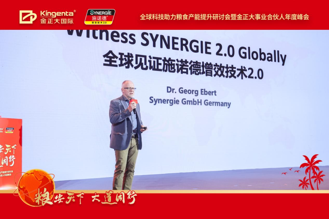 “作为增效技术创领者,德国施诺德研究院最新研发的德国施诺德增效技术2.0,通过独特的养分防漏技术、植物疫苗技术和菌群激活技术实现三重技术叠加,可实现氮长效、磷高效、钾增效,诱导植物免疫,增强植物抗逆,改善土壤微环境,提升肥料利用率,降低农民生产成本,还减轻施肥对土壤的伤害。”德国施诺德研究院首席科学家Dr.Georg Ebert表示,这一系列技术已应用于金正大集团全系产品且效果优异。