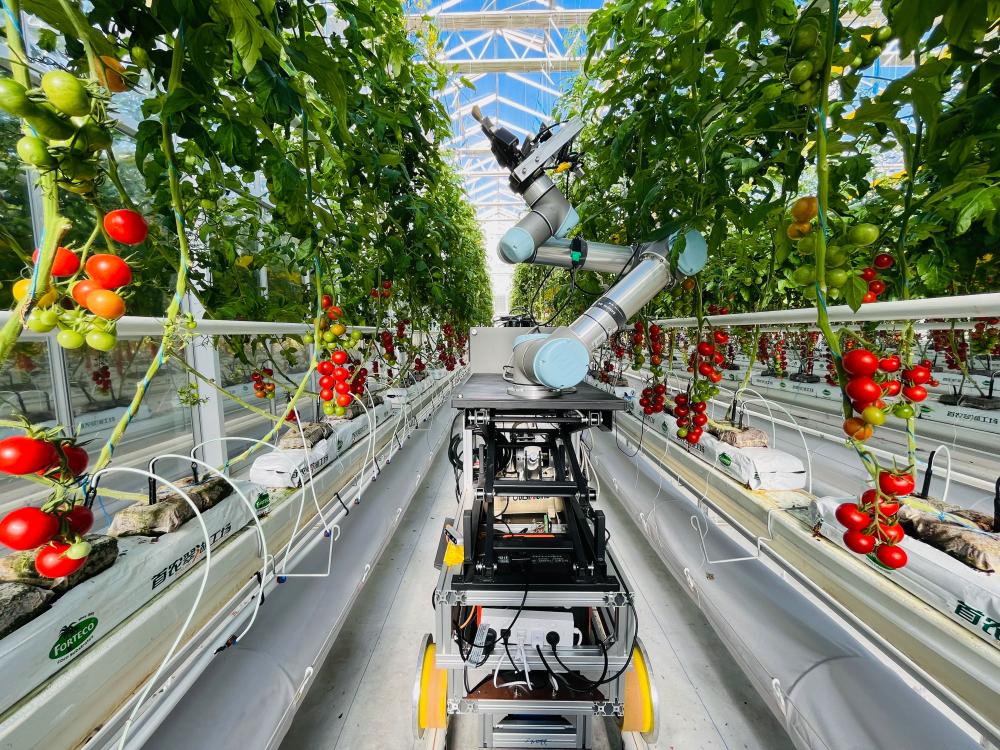 2024年11月29日,智能育种机器人“吉儿”在位于北京的一个现代化商业温室中进行番茄自动杂交授粉操作。新华社发