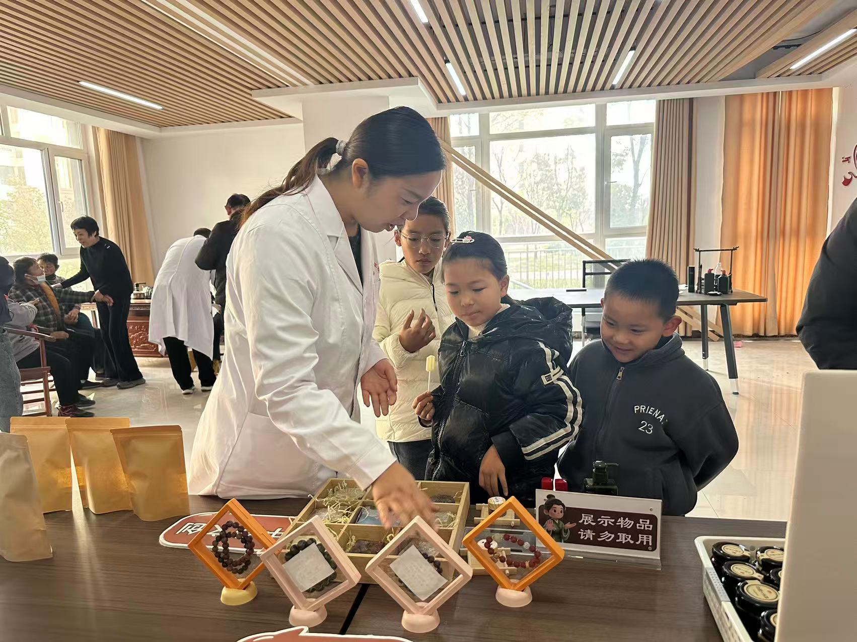 社区还巧妙融入中医药文化,打造“可感知、可体验、可传承”的文化场景。“药香四溢”体验区内,居民不仅可以品尝润肺梨膏水,还能亲手制作中药香囊和手串,切身感受“药食同源”的健康理念。推拿体验区由专业医师提供肩颈调理服务,并讲解日常穴位保健知识;《神奇百草园》科普课堂上,护士长王锦生动讲解中草药知识,家长与孩子共同制作中药香囊,在互动中促进文化传承。
